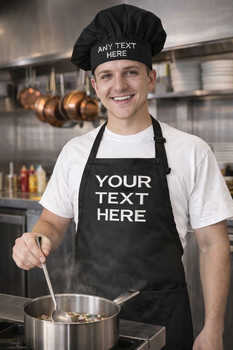 Take your culinary experience to the next level with personalized aprons and chef hats! Add your own logo or design to make them truly unique. Whether it's for a professional kitchen, a home cook, or a themed gathering, these custom creations will definitely impress. They are perfect for any event or occasion, from BBQs to family dinners, and show how much you care about quality cuisine. Get ready to wow your guests with these one-of-a-kind pieces of art!